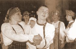 - Организаторы, в первую очередь, хотели добиться чистоты, истинности звучания. То есть никакой электронной музыки, ничего искусственного, всё должно быть натуральным. Мы ездили без оркестра, и представляли нас следующим образом: «Послушайте древнейший из всех музыкальных инструментов - человеческий голос». Идея нашей программы заключалась в том, чтобы показать традиционные для Пскова пляски под язык. Танцоры исполняли свои партии под вокальное сопровождение девушек, под их песни. Благодаря этому мы значительно выделились среди остальных участников.