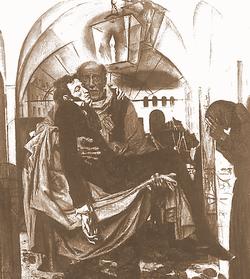 Из воспоминаний К. К. Данзаса: «Госпожа Пушкина возвратилась в кабинет в самую минуту его смерти... Наталья Николаевна Пушкина была красавица. Увидя умирающего мужа, она бросилась к нему и упала перед ним на колени; густые темно-русые букли в беспорядке рассыпались у ней по плечам. С глубоким отчаянием она протянула руки к Пушкину, толкала его и, рыдая, вскрикивала: „Пушкин, Пушкин, ты жив?!»».