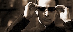В качестве мессии и выступает Нео, способный и летать, и воскрешать, в котором многие кинокритики, кстати, видят Иисуса Христа. Однако под попечительством Морфеуса он больше смахивает на новое воплощение Будды, за которым рьяно следит нашедший его Лама. Плюс ко всему особую религиозную атмосферу создают мифологические имена героев, всевозможные символы и цитаты из философских трактатов, которыми преисполнены все диалоги героев.