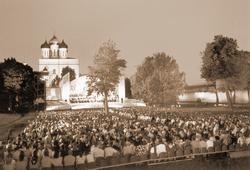 16 июля в Псковском Кремле псковичи слушали концерт академического симфонического оркестра Санкт-Петербургской филармонии под управлением Юрия Темирканова.