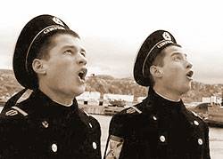 Как ни странно, совместно с пафосом ужилась и ирония над современной жизнью военных. Посредством иронии в картине показывается суровая правда жизни – не все так хорошо на флоте, как хотелось бы: солдаты безграмотны, денег нет, халатность процветает и прочее.