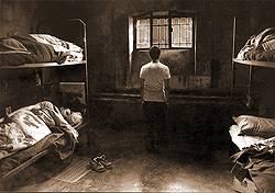 Здесь ощущение ужаса передается не столько внешним действием, сколько атмосферой фильма и лицами героев, чуть заметными движениями глаз, подрагиванием губ. Также обстановкой тюремной камеры, где единственным источником света является зарешеченное окно, расположенное на высоте двух метров от пола. Героям из него видна только тюремная стена и закат солнца.