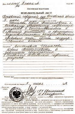 В тот же день, 8 июля, судья выписал исполнительный лист, подлежащий немедленному исполнению: «Восстановить Шматова Юрия Анисимовича в должности председателя областного Собрания депутатов». Согласно российским законам, решение суда о восстановлении на работе исполняется немедленно, несмотря на право кассационного обжалования. Это же решение автоматически прекращает полномочия любого лица, занимавшего на момент суда должность восстановленного на работе. То есть Валентин Каленский с момента провозглашения судебного решения перестал быть «и. о. председателя Собрания».