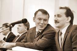 | Михаил Кузнецов и Дмитрий Шахов с радостью поведали псковским законодателям о своих бывших депутатских буднях. Фото: Александр Тимофеев. |