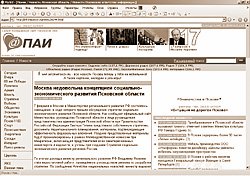 В 10 часов 44 минут утра следующего дня информация об этом под заголовком «Москва недовольна концепцией социально-экономического развития Псковской области» появилась на сайте одного из «информационных флагманов» региона – ИА «Псковское Агентство Информации» [ 7 ]. По информации ПАИ, «в ходе совещания было отмечено, что В. Яковлев не будет требовать многого от руководства области, поскольку регион относится к категории депрессивных. В то же время он предостерег областное руководство от иждивенческих настроений и расчетов на чрезвычайную помощь от федерального центра, порекомендовал тщательнее распорядиться собственными ресурсами, в частности, приграничным со странами Евросоюза положением области» [ 8 ].