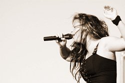 Лично я услышал в звучании немецкой группы «Xandria», выступившей в воскресном Open-Air, профессиональный хард-рок типично германской «выделки» с очень впечатляющим женским вокалом, напоминающим одновременно Кейт Буш и Тарью Турунен из «Nightwish».
