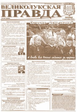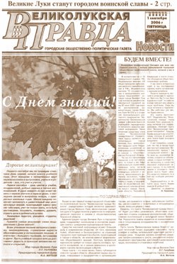 1 сентября в Великих Луках вышло в свет новое печатное СМИ – «Великолукская правда. Новости».