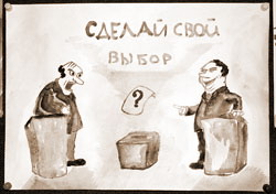 | Рисунок ребенка (автор неизвестен) поступил на конкурс рисунков о выборах в избирательную комиссию Псковской области в 2007 году. |