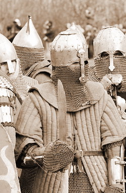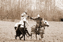 Простояв на поле минут пятнадцать, «воины» начали снимать шлемы и освобождаться от части доспехов. Под шлемами обнаружились лица самых разных возрастов: от мальчиков до мужей. Еще через пару минут зрители могли наслаждаться весьма колоритным зрелищем: рыцари и витязи, разговаривающие по мобильникам и с сигаретами в зубах. Многие положили щиты на землю и улеглись на них. Чувствовалось, что весят доспехи и кольчуги не мало, и что их счастливые обладатели пользуются малейшей возможностью для того, чтобы немного передохнуть перед схваткой.