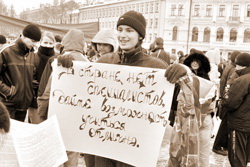 15 ноября в Пскове состоялся студенческий пикет, организованный Молодежным советом профсоюзов. Благодаря слаженной работе чиновников от образования и руководства ВУЗов, студенты и милиционеры присутствовали на нем в соотношении примерно 1:2.
