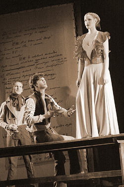Хотя и мелькнет: неужели это те самые люди, которые вчера так беспомощно тонули в пушкинском тексте? А если бы дать им второй шанс? Или искусство театра действительно живет только в то время, в которое совершается? Второй шанс – другой спектакль? Однако же, в Пушкинские Горы «Пушкинская школа» повезла именно комедию Шекспира, а не «Дон Гуана».