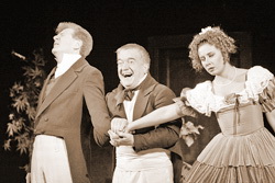 | Игорь Костолевский, Михаил Филиппов, Юлия Булавко. «Женитьба» Н. В. Гоголя. Московский «Театр на Покровке». Постановка Сергея Арцибашева. Фото: Александр Сидоренко |
