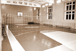 Спортивный зал – гордость школы. Я, признаюсь, в нем раньше не был, только слышал рассказы. Зал впечатляет. Не только меня, прокурора тоже. Не в каждой псковской городской школе есть такой спортивный зал. Разметка только что сделана свежей краской, все оборудование – с иголочки. Чисто.