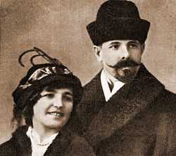 | Павел Андрианович и Домникия Илларионовна Кузнецова-Новолейник у своего аэроплана марки «Блерио-ХI» во время лекции в Смоленске. Начало 1911 г. |