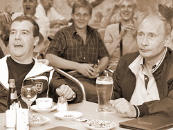 | Дмитрий Медведев (слева) и Владимир Путин (справа) научились получать удовольствие от жизни. |