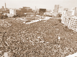 Следуя примеру Туниса, люди в нескольких городах Египта, а так же в других местах, столкнувшись с невыносимыми условиями, продолжают, не боясь арестов, выступать за свободу. Арабские правительства не подотчетны своему народу; ни один глава государства не покидал свою позицию по результатам голосования; все лидеры делают вид, что на выборах за них проголосовало подавляющее большинство (сказанное не относится к Ливану, где формирование правительства прямо зависит от результатов парламентских выборов; от состава парламента на момент окончания президентской каденции зависит и выбор нового президента – «Полит.ру»).