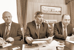 | Представители УФСБ России по Псковской области: начальник управления Георгий Драчёв (в центре), заместитель начальника Владимир Прусаков (справа) и ветеран управления Валентин Зибницкий (слева) дали в Пскове брифинг для СМИ. Фото: Псковская Лента Новостей |