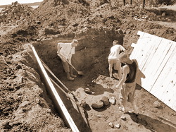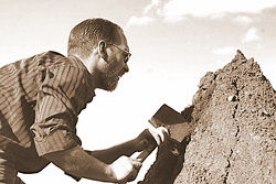 | Александр Михайлов ищет в отвале земли у котлована на Себежском городище следы памятника археологиского наследия. 8 июня 2011 г. Фото: Лев Шлосберг |