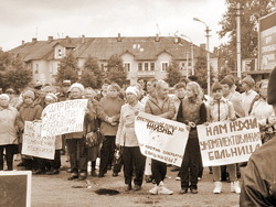 | Жители города Дно на митинге протеста против реорганизации Дновской центральной районной больницы 17 сентября 2011 года. Фото: Сообщество «Мы против закрытия Дновской центральной районной больницы». |