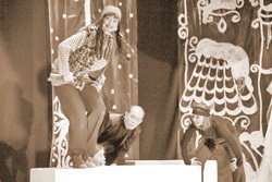 Главная проблема спектакля «Волшебный билет…» – отсутствие актерского ансамбля. Кто-то играет, кто-то – переигрывает, кто-то просто передвигается по сцене и произносит реплики. Нет никаких сомнений, что большая часть задействованных в спектакле артистов в колледже искусств экзамен по актерскому мастерству не сдала бы, не говоря уж о театральном институте им. Щукина.