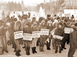 Стоит, наверное, остановиться на достижениях псковского пропутинского митинга: в 30-градусный мороз профсоюзы смогли собрать немалую толпу, которая, по официальным данным, насчитывала от 600 до 1000 человек, хотя, на деле, где-то шестью сотнями и ограничилась.
